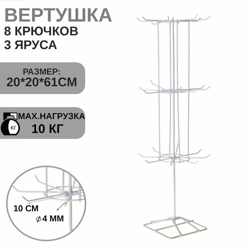 Вертушка, 3 яруса по 8 крючков, 20×20×61