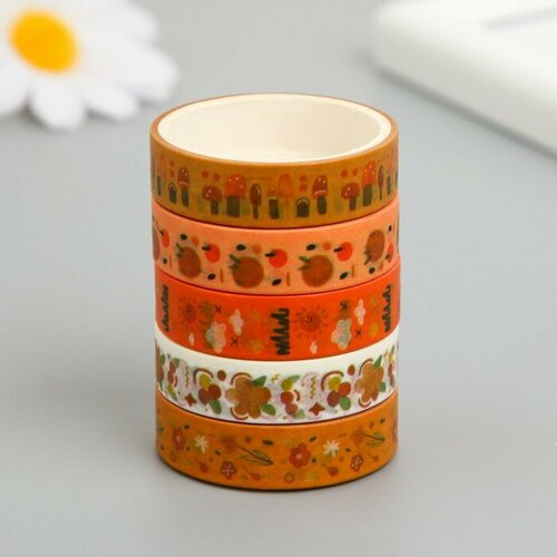 Клейкая лента бумага "Оранжевое настроение" ширина 1 см намотка 2 м набор 5 шт