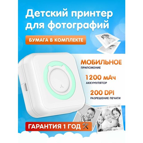 Портативный мини принтер для телефона Kid Joy, 200DPI, Bluetooth 5.1, поддержка приложения (C15) Blue