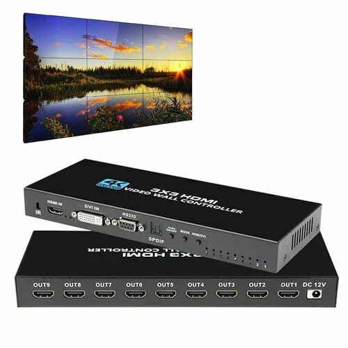 Контроллер видеостены 3x3, 1 вход/9 выходов, HDMI 1.4, RS232, IR (ORIENT HSP3X3WN)