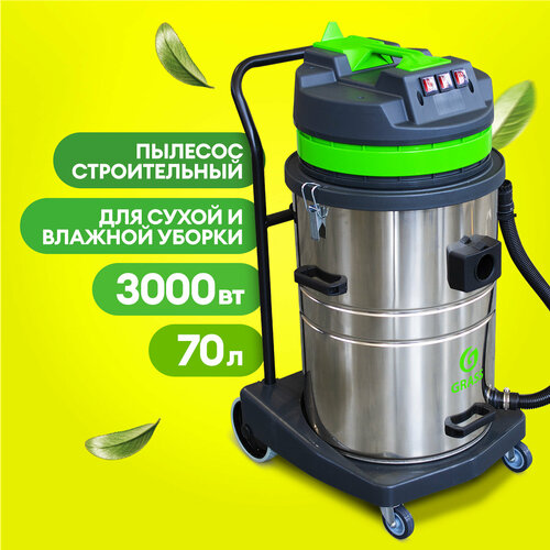 Профессиональный пылесос Grass BF580-3, 3000 Вт, серебристый/зеленый
