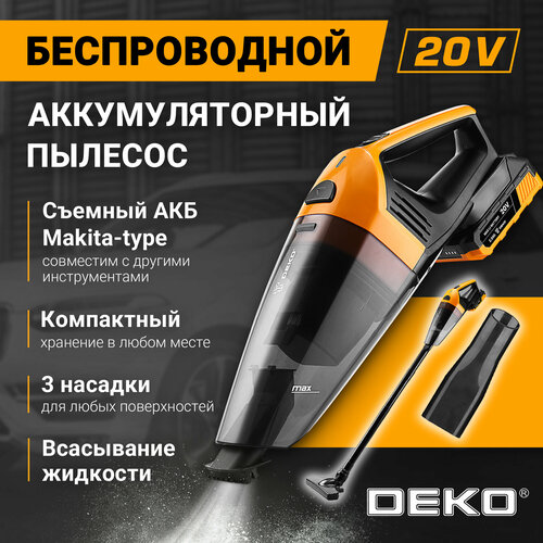 Пылесос аккумуляторный ручной DEKO DKVC20V, 20В, 1*2.0Ач