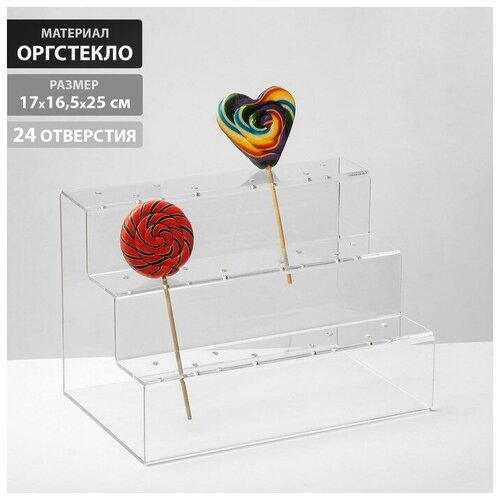 Queen fair Подставка под леденцы 17*16,5*25, оргстекло 3мм, 3 ступеньки, вместимость на 24 штуки, В защитной плёнке