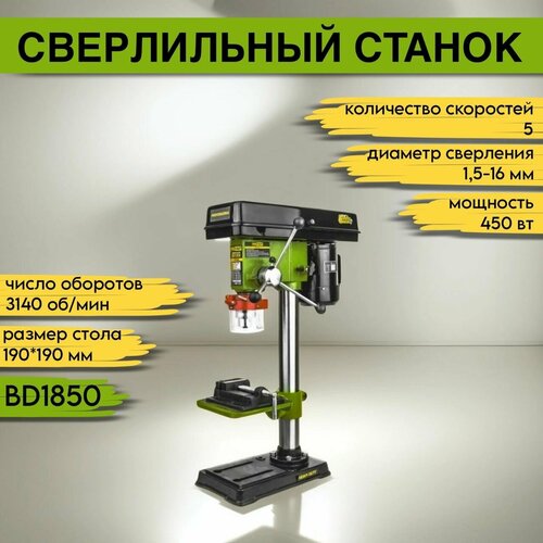 Сверлильный станок Procraft BD-1850, 5 скоростей, патрон 16мм, 3140об/мин, 450Вт