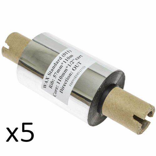 Набор 5 штук. Риббон Wax Standard (57 мм x 110 м x 1/2" x 110 мм OUT) (011), колортек