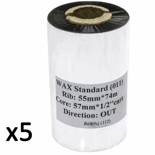 Набор 5 штук. Риббон Wax Standard (55 мм x 74 м x 1/2" x 57 мм OUT) (011)