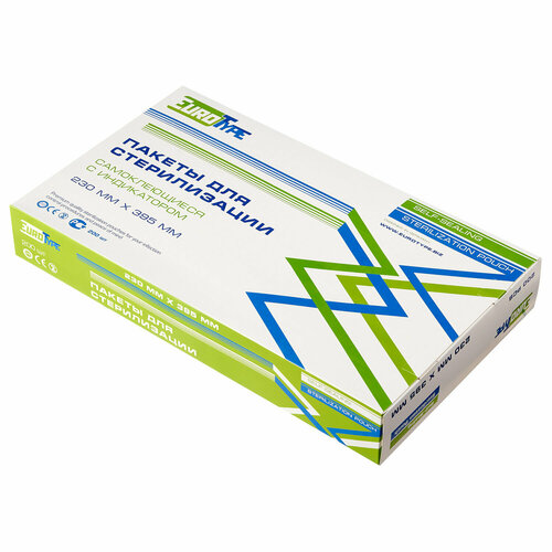 Пакет комбинированный самоклеящийся 230х395 мм EUROTYPE 200 шт, для паровой/газовой стерилизации