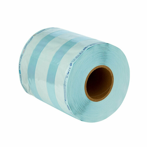 Type для паровой/газовой стерилизации 200 мм x 200 м. Стерилизационные рулоны изготовлены из: - непрозрачная сторона - медицинская бумага (60 г/кв. м.), на эту сторону наносится маркировка; - прозрачная сторона - прозрачная полимерная пленка (полиэстер = 12um + полипропилен = 40um). Прозрачная и непрозрачная стороны соединены между собой термошвами. Прозрачная сторона позволяет легко идентифицировать упакованные изделия. На место шва рулонного материала нанесены обозначения: - торговая марка; - маркировка типоразмера; - цветные химические индикаторы в виде двух параллелепипедов, под которыми написано название соответствующ