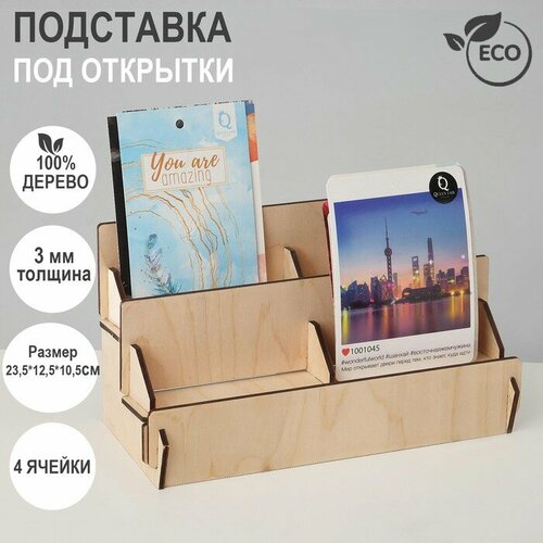 Подставка под открытки 4 ячейки по 10,8 см, 23,5 х 12,5 х 10,5 см, толщина 3 мм