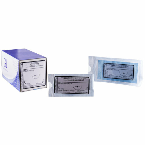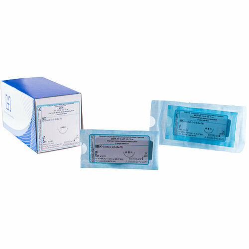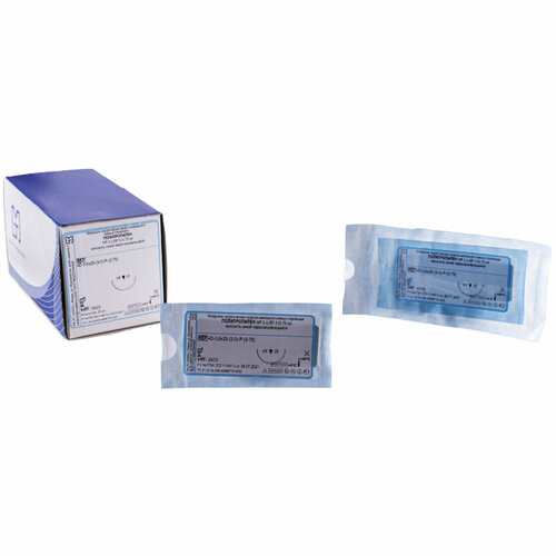 Синтетический нерассасывающийся шовный хирургический материал с атравматической иглой в стерильной двухслойной упаковке. Нить: плет...