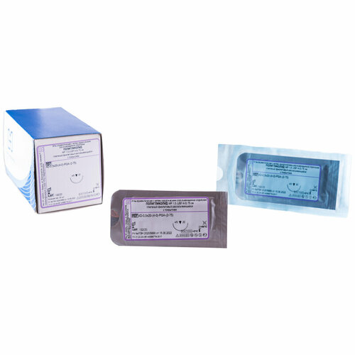 Иглы атравматические с нитями хирургическими рассасывающимися ПОЛИГЛИКОЛИД-КО-ЛАКТИД MР 4 (USP 1), 90см, плетеный с покрытием, 20 шт/уп
