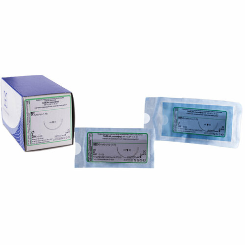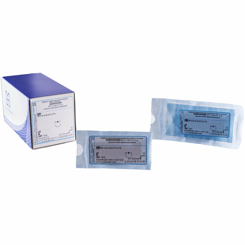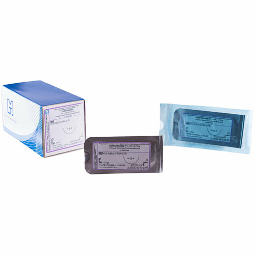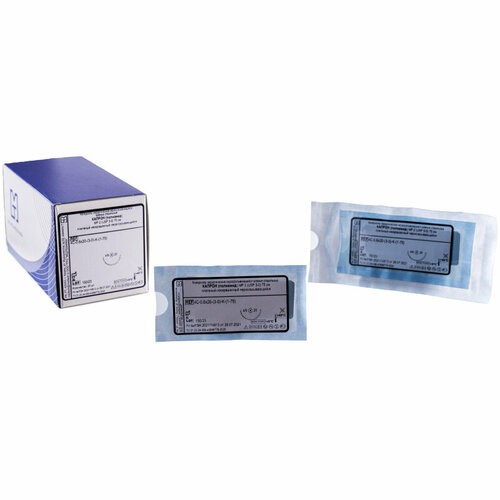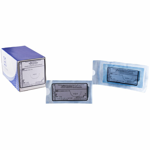 Синтетический натуральный нерассасывающийся шовный хирургический материал с атравматической иглой в стерильной двухслойной упаковке...