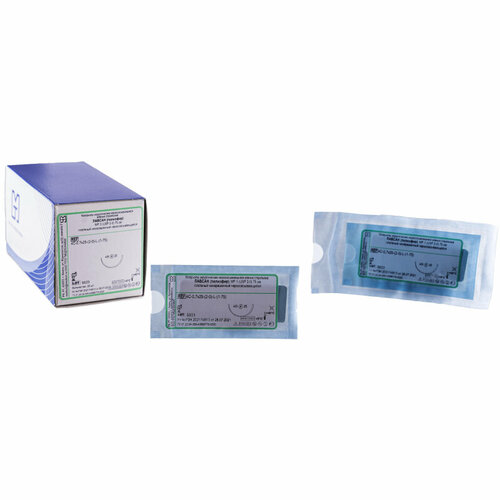 Игла атравматическая с нитью хирургической ПОЛИГЛИКОЛИД-КО-ЛАКТИД плюс MР 4 (USP 1), 90см, плетеный рассасывающийся с покрытием, 20 шт/уп