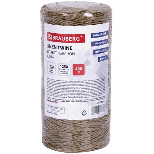 Шпагат льняной банковский, комплект 30 шт, диаметр 1.5 мм, длина 400 м, линейная плотность 1250 текс, BRAUBERG, 600115