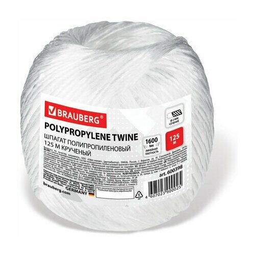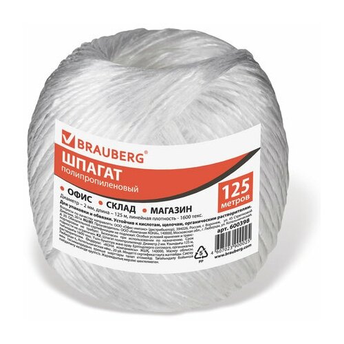 Шпагат полипропиленовый, длина 125 м, диаметр 2 мм, линейная плотность 1600 текс, BRAUBERG, 600398 (цена за 1 ед. товара)