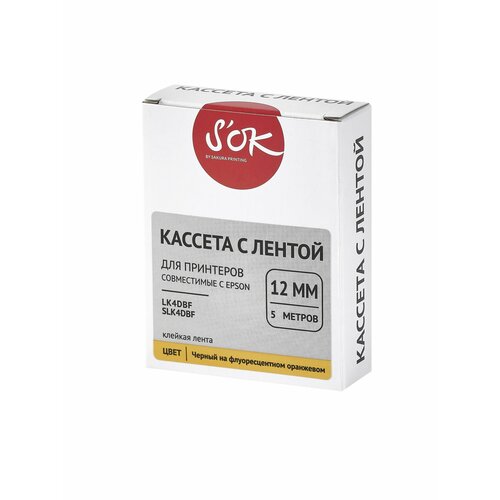 Кассета с лентой K4DBF для Epson, цвет на флуоресцентном оранжевом, ширина 12мм, длина 5м SOK