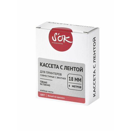 Кассета с лентой TZE445 для Brother, на красном, ширина 18мм, длина 8м , SOK