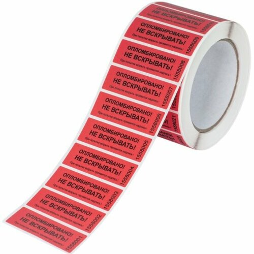 Пломба наклейка спецконтроль 66x22 мм, красная, 1000 шт/рул
