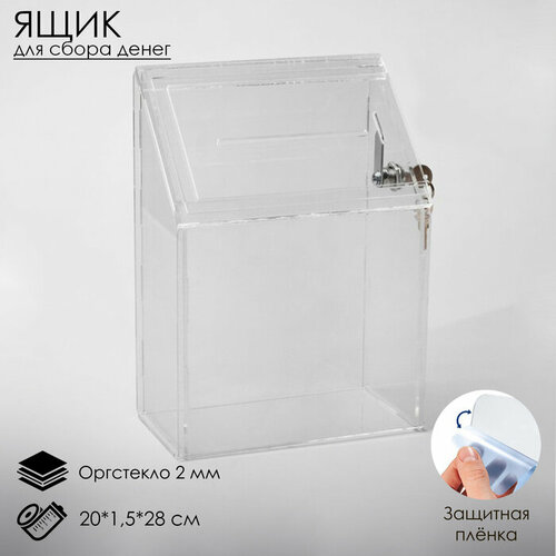 Ящик для сбора денег с врезным замком, 20×1,5×28 см, оргстекло 2 мм, В защитной плёнке