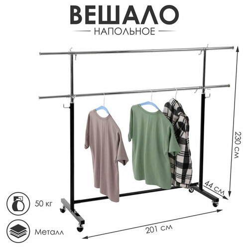 Вешало П-образное c двумя перекладинами 120-183×43×97-190 см, цвет чёрный
