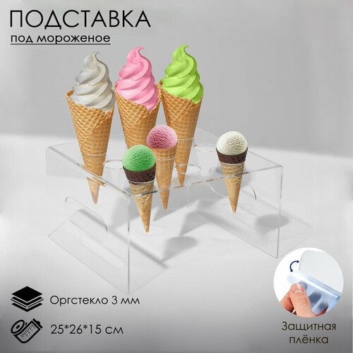 Подставка под мороженое 25×26×15, оргстекло 3 мм, d=4 см, цвет прозрачный, В защитной плёнке