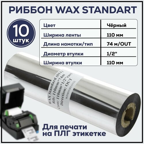 10 штук. Черный риббон WAX (110 мм x 74 м x 1/2" x 110 мм) OUT