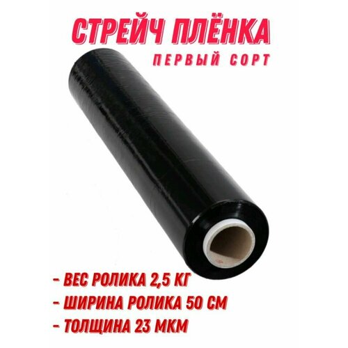 Стрейч пленка черная упаковочная, вес ролика 2,5 кг, ширина рулона 500 мм