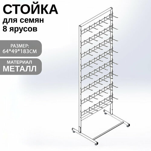 Стойка для семян, с крючками 14,6 см, 8 ярусов, 64×49×183 см