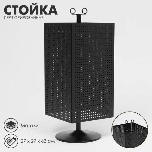 Стойка перфорированная разборная, 4 стороны, крутящиеся, 27×27×63 см, цвет чёрный матовый