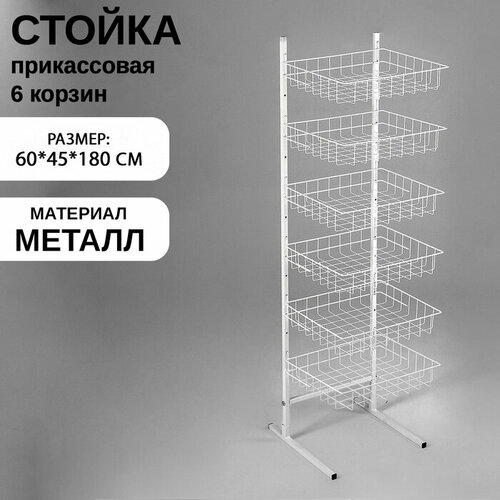 Стойка прикассовая для снэков с 4-штыревой гребёнкой, с 4 крючками, 1 корзина, 45×46×180 см