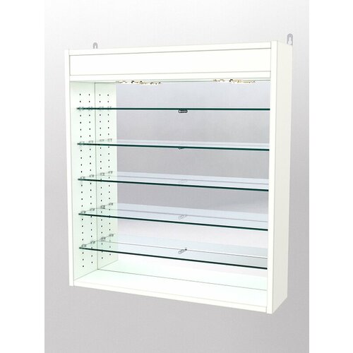 Витрина настенная с регулировочными полками №1-8Г-РЕГ с зеркалом и с подсветкой, Белый 60 x 15 x 67 см