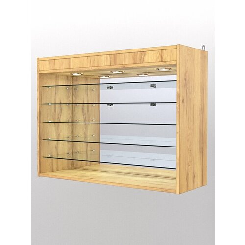 Витрина настенная №3-8ГГ с зеркалом и с подсветкой, Дуб Золотистый 90 x 30 x 67 см