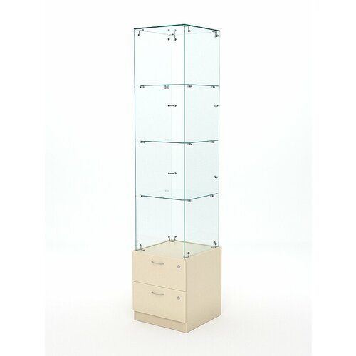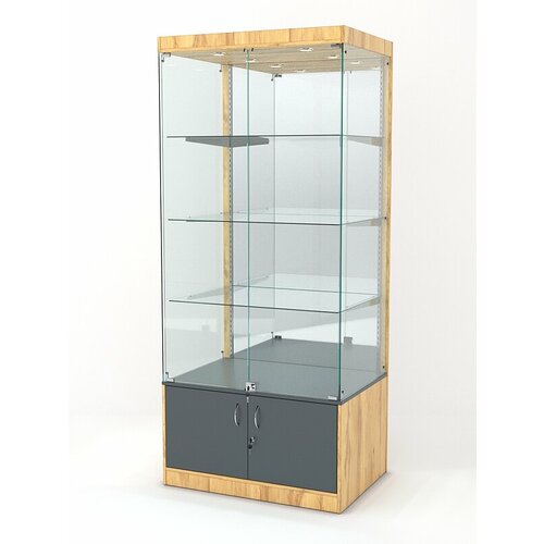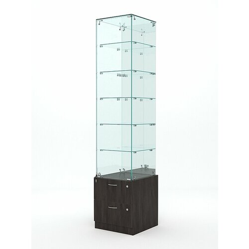 Витрина стеклянная "кристалл" №506 (с дверкой, задняя стенка - стекло), Грейвуд 45 x 45 x 202 см