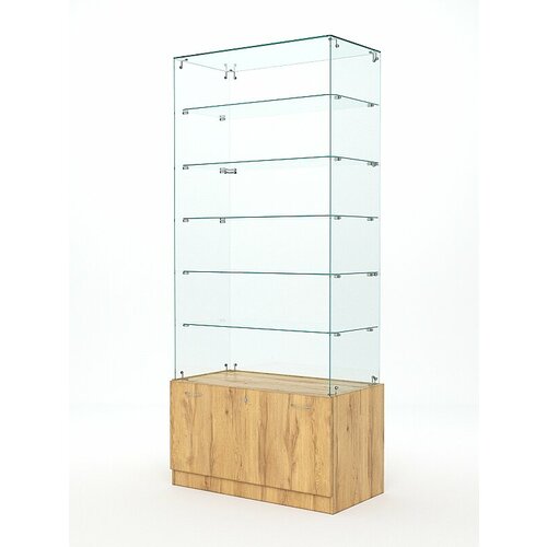 Витрина стеклянная "кристалл" №605 (без дверок, задняя стенка - стекло), Дуб Золотистый 90 x 45 x 202 см