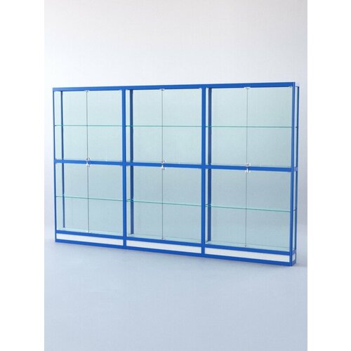 Витрина "прямоугольная" №4-3м-200-2 (задняя стенка - стекло), Белый + Делфт голубой 300 x 20 x 200 см