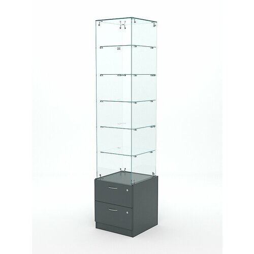 Витрина стеклянная "кристалл" №106 (без дверки, задняя стенка - стекло), Темно-Серый 45 x 45 x 202 см
