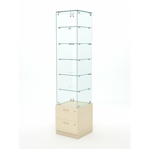 золотистыйГабариты: 45 x 45 x 210 см Общая и техническая информация. Витрины стеклянные серии "хрусталь" представляют собой аналог витрин "истра" с нижним накопителем высотой 505мм, в который встроены несколько выдвижных ящиков; прозрачными боковинами и задней стенкой из стекла или зеркала. Абсолютно стеклянные по периметру варианты витрин "хрусталь" позволяют потенциальному покупателю осмотреть товар, который представлен на полках витрины, со всех сторон. Витрина собирается в течение 1,5 часов и является незаменимым "помощником" в продвижении товара различных брендов. Стандартная цветовая палитра ЛДСП: Белый с черной кромкой, Бук Бавария, Вишня Оксфорд, Орех Миланский, Дуб Венге, Дуб Сонома, Серый. Нестандартные цвета ЛДСП «на заказ» обсуждаются отдельно с менеджерами. Описание витрины: Верхняя крышка: фриз с подсветкой; Кол-во полок: 5шт, расстояние между которыми 245мм; Задняя стенка витрины: зеркало 4мм; Распашная дверка: стекло 5мм. За дополнительную оплату конструкция витрины может быть изменена. Высота 2100мм, ш