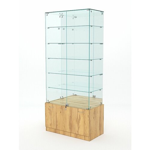 Витрина стеклянная "хрусталь" №505 (с дверками, задняя стенка - стекло), Дуб Золотистый 90 x 45 x 202 см