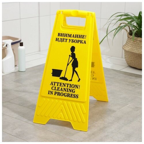 Знак «Внимание! Идёт уборка», 61×30 см, пластик, цвет жёлтый