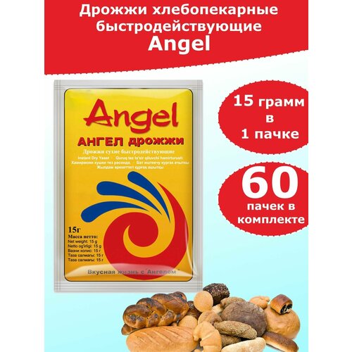 Дрожжи быстродействующие Angel для выпечки, 15 гр (60 пачек)