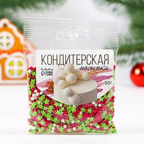 Посыпка кондитерская "Новый год" "Звёзды", красный, белый, зеленый 50 г