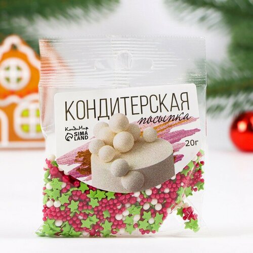 Посыпка кондитерская "Новый год" с мягким центром, Ассорти Новогоднее, (зеленые, белые, красные), 20 г 100879