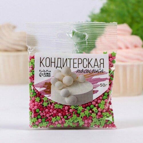 Посыпка кондитерская "Новый год" с мягким центром, Ассорти Новогоднее, (зеленые, красные, розовые), 50 г 100879