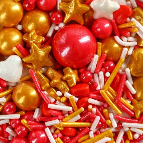 Посыпка кондитерская фигурная пасха «Сердце и звезды»: золотая, белая, красная, 25 г.