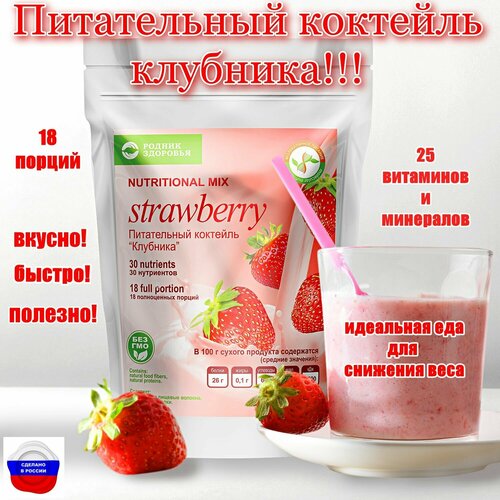 Питательный коктейль Клубника, Родник здоровья, низкокалорийный белковый, для похудения, протеиновый, с витаминами, с минералами