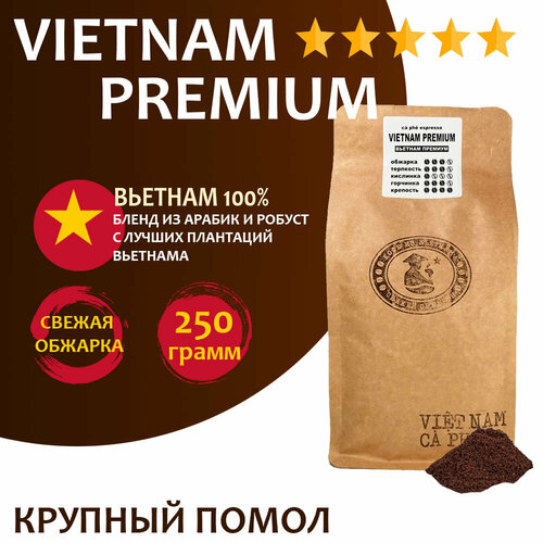 Кофе молотый VNC "Vietnam Premium" 250 г, крупный помол, Вьетнам, свежая обжарка