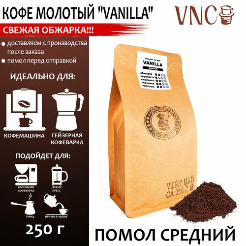 Кофе молотый VNC "Vanilla", 250 г, средний помол, ароматизированный, свежая обжарка, (Ваниль Бурбон)