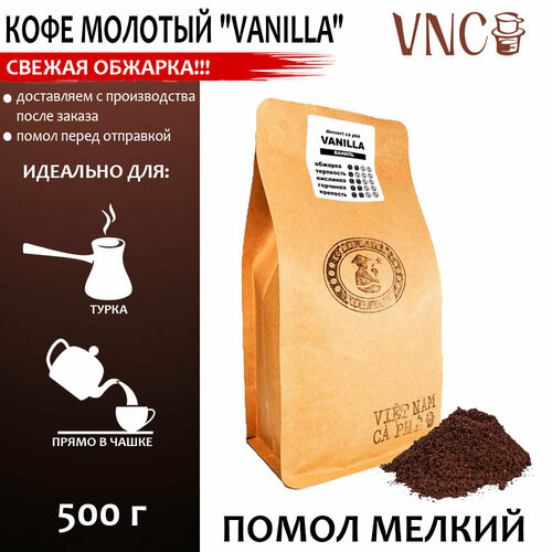 Кофе молотый VNC "Vanilla", 500 г, мелкий помол, ароматизированный, свежая обжарка, (Ваниль Бурбон)