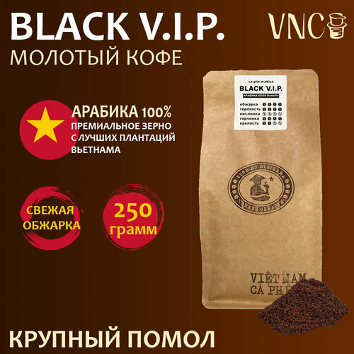 Кофе молотый VNC Арабика "Black V.I.P." 250 г, крупный помол, Вьетнам, свежая обжарка
