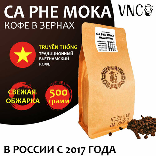 Кофе в зернах VNC "Ca Phe Moka" 500 г, Вьетнам, свежая обжарка, (Кафе Мока)